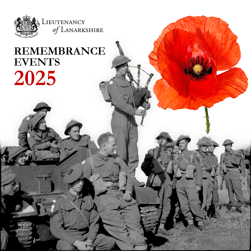 Representatives of the Lanarkshire Lieutenancy will once again lay wreaths at nearly 70 War Memorials in the county over Remembrance Weekend . Lord Lieutenant , Lady Susan Haughey CBE said ” It is 80 years since the Second World War ended. It had cost the lives of millions; destroyed homes, families and cities; and had caused universal suffering. 2,309 Lanarkshire men and women lost their lives in the War. Their names are inscribed on memorials in towns and villages across the county. We will pay our respects on Remembrance Sunday.